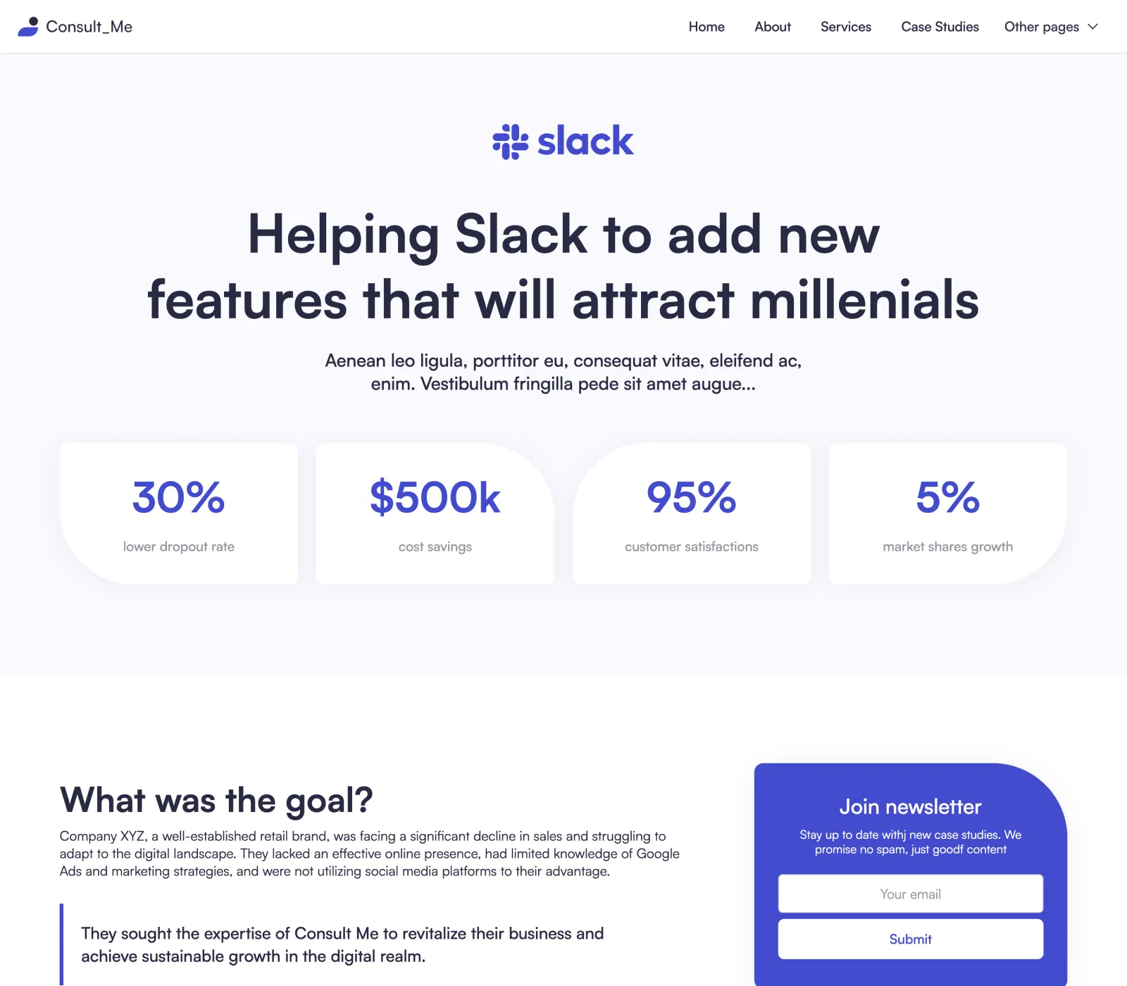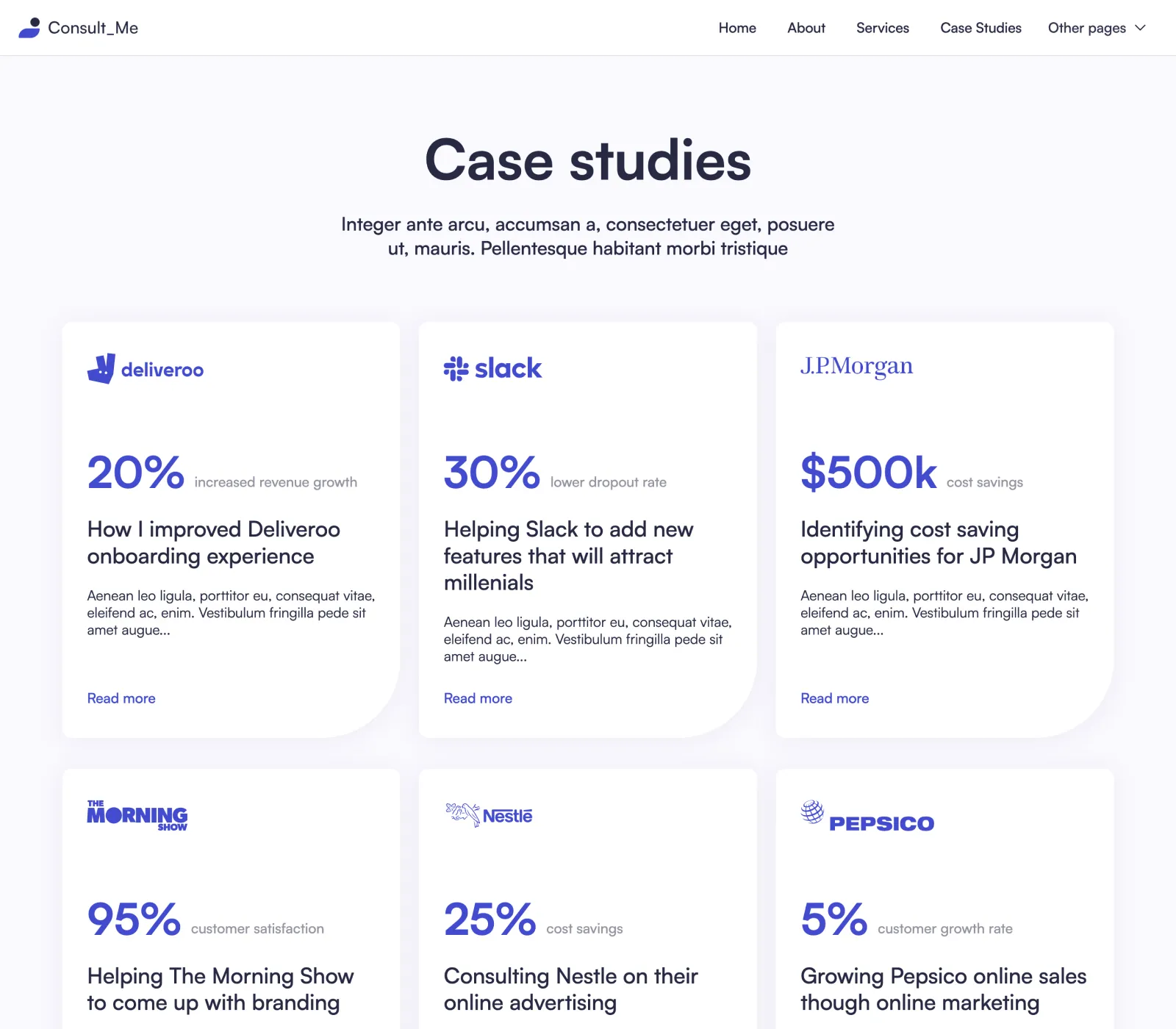 Yes, we know... it's easy to say it, but that's the fact. We did put a lot of thought into the template. Consult Me was designed by an award-winning designer. Layouts you will find in our template are custom made to fit the industry after carefully made research.